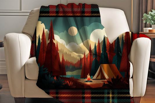 Sherpa Throw Blanket - Christmas Cabin Plaid - Soft Plush Throw Blanket