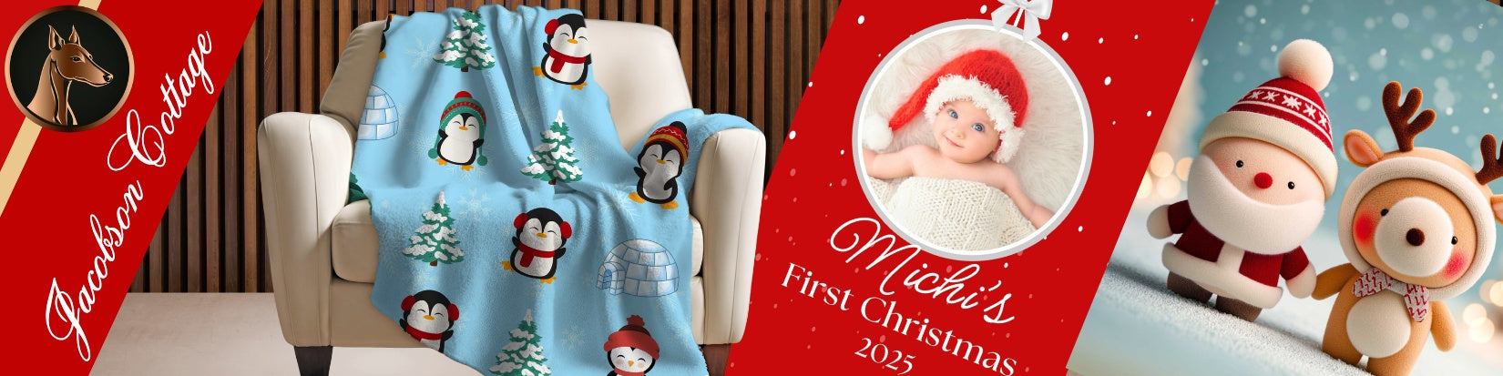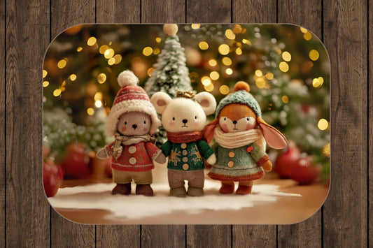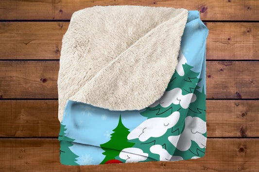 Sherpa Throw Blanket - Woodland Animals in Christmas - Soft Plush Throw Blanket