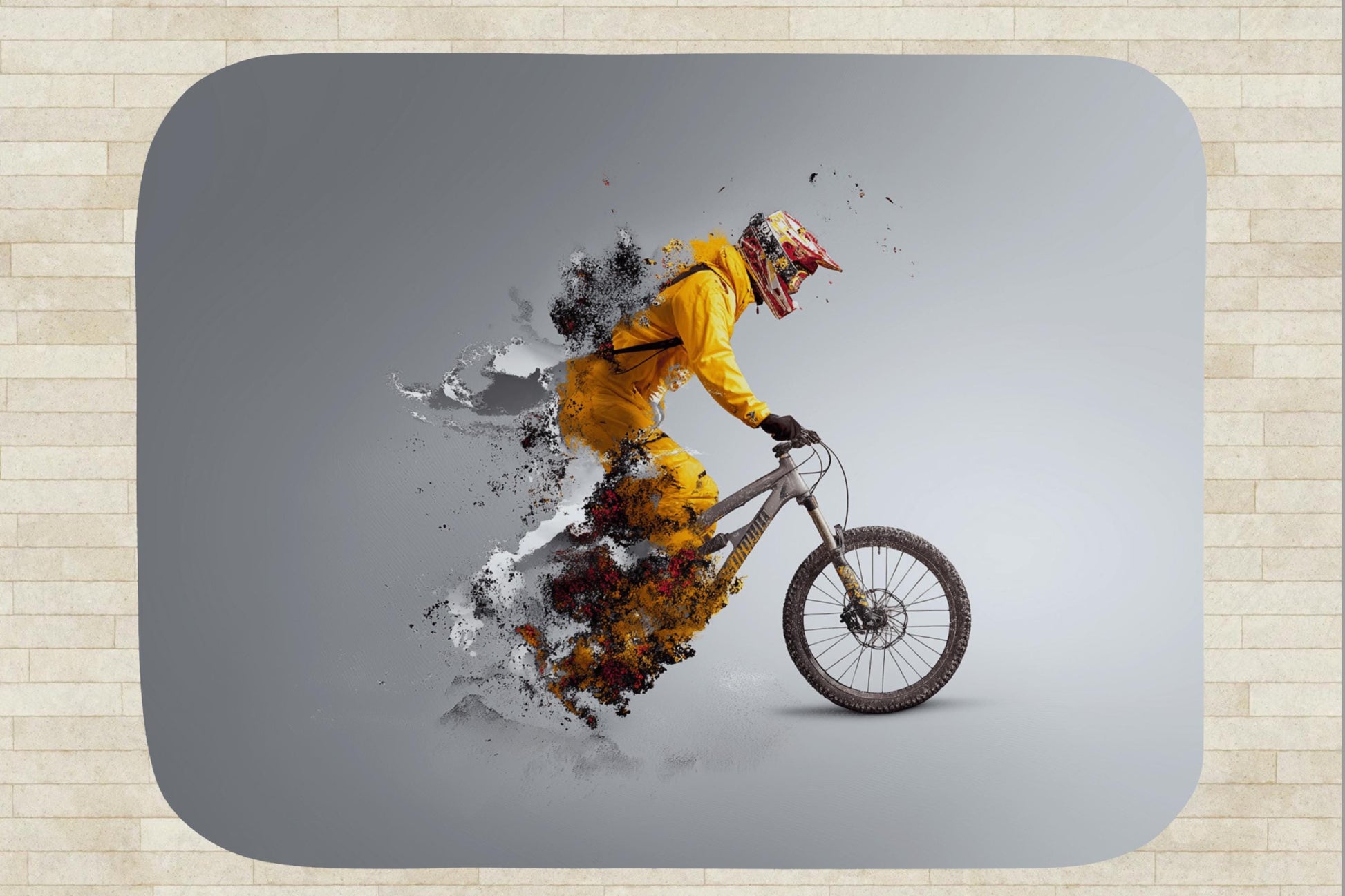 Design: Dynamic mountain biker with explosive dispersion effect