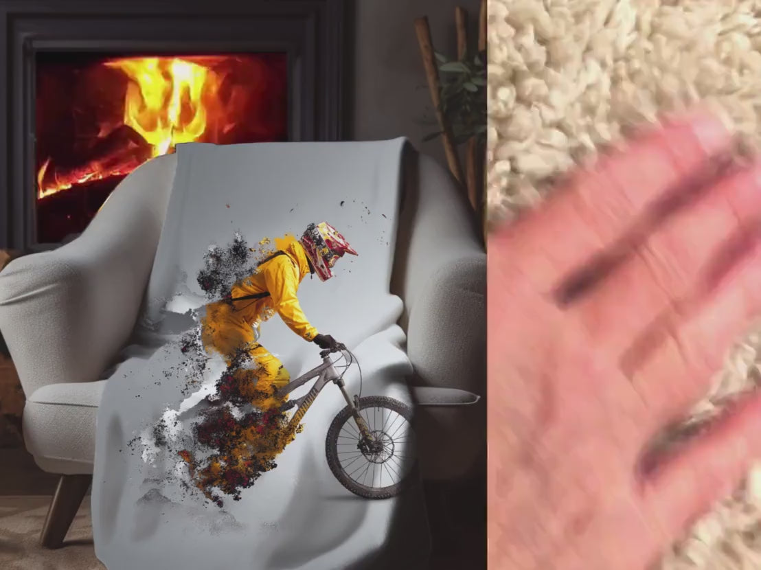 Abstract Mountain Biker Sherpa Blanket – Exploding Motion Art, Downhill Cycling Sports Throw