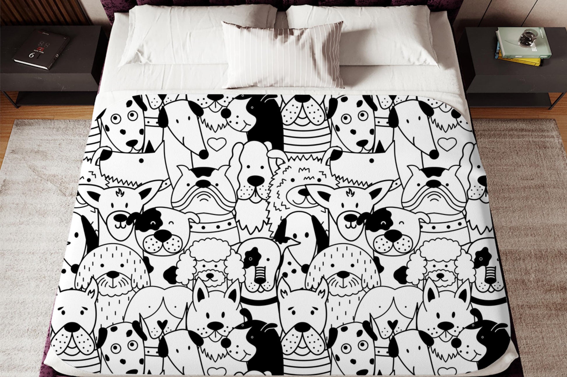 Bring a whole pack of pups home with this cozy sherpa blanket!This black-and-white throw features a charming crowd of cartoon dogs, making it a fun and stylish statement piece for dog lovers of all ages. Perfect for kids' rooms, pet parents, or anyone who wants a pop of personality in their blanket collection.