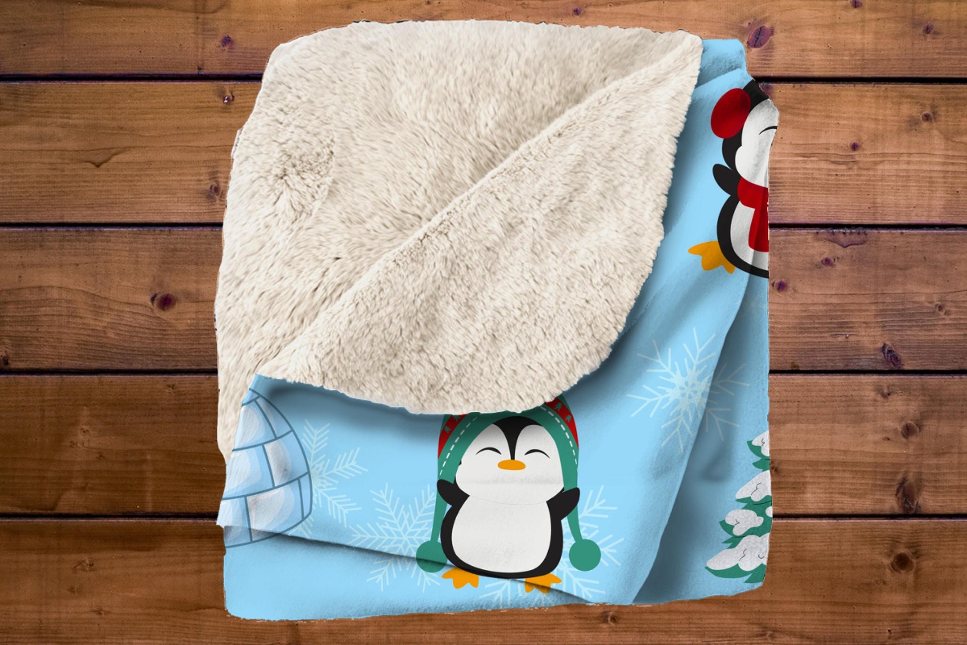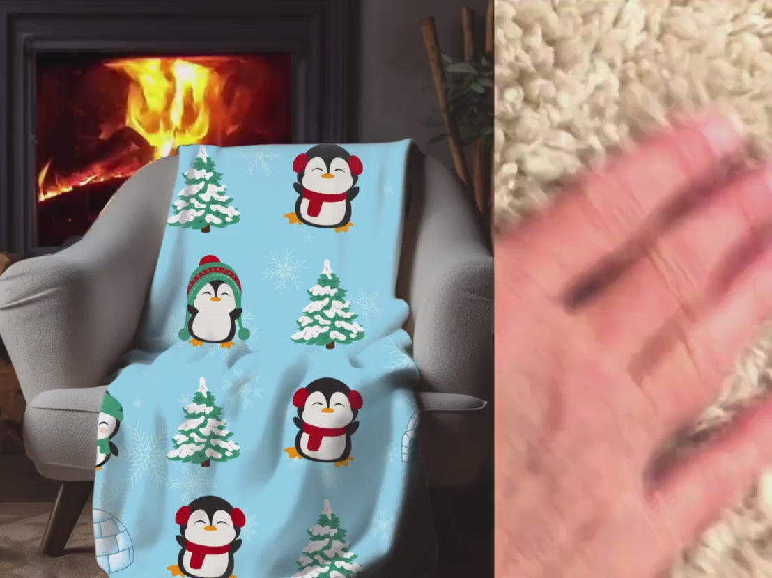 Cute Penguin Sherpa Blanket – Winter Igloo Snowflake Kids Cozy Throw
