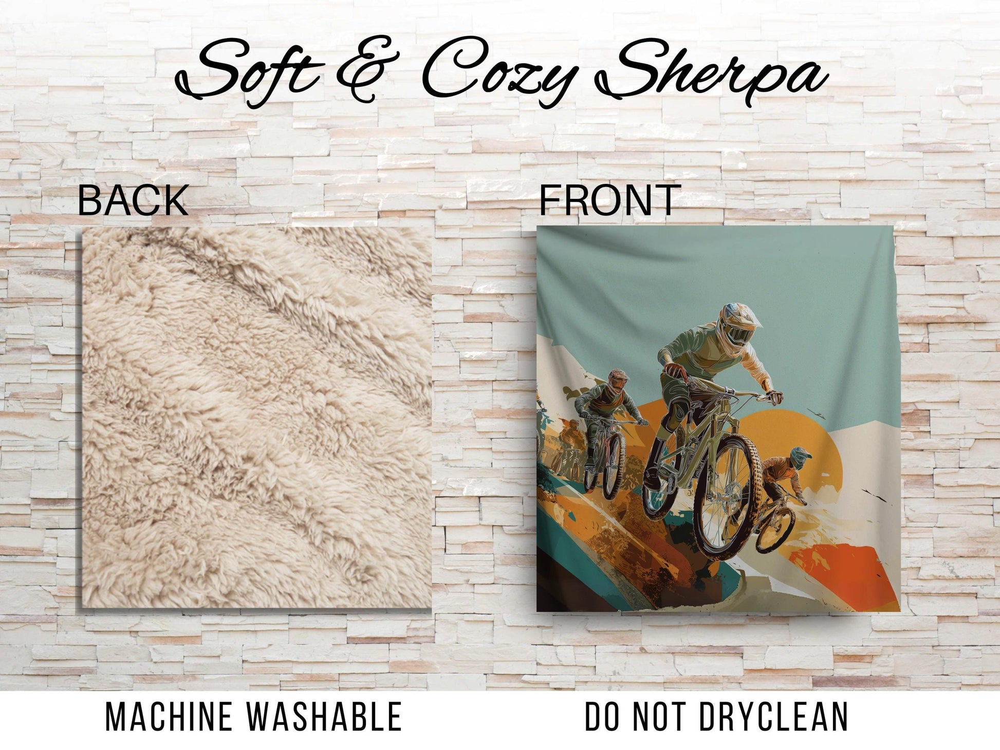 Downhill Mountain Biker Sherpa Blanket – Action Sports Cycling Art, Trail Rider Adventure Throw