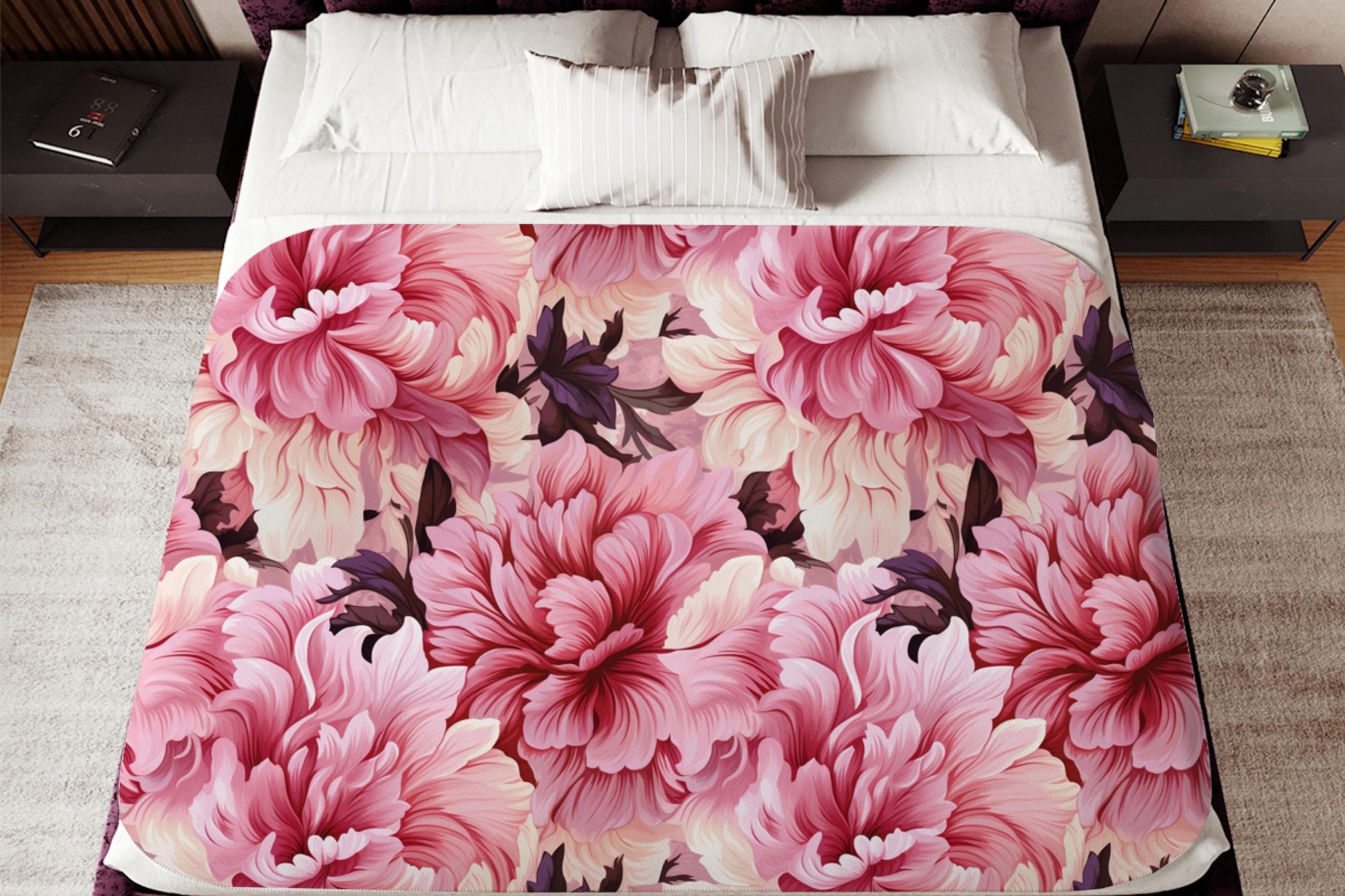 Pink Peony Sherpa Throw Blanket Large Floral Pattern