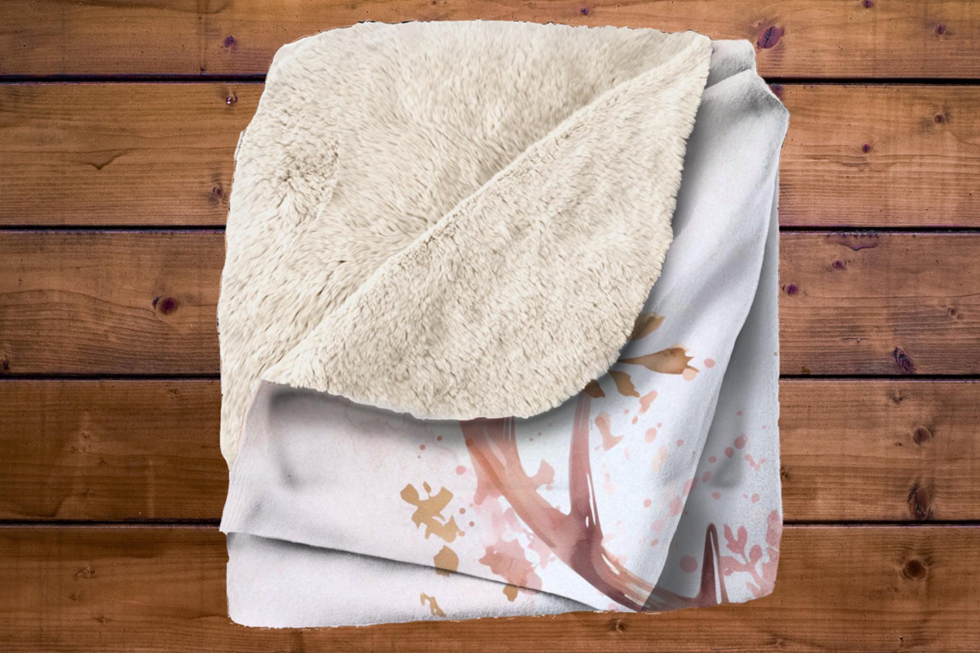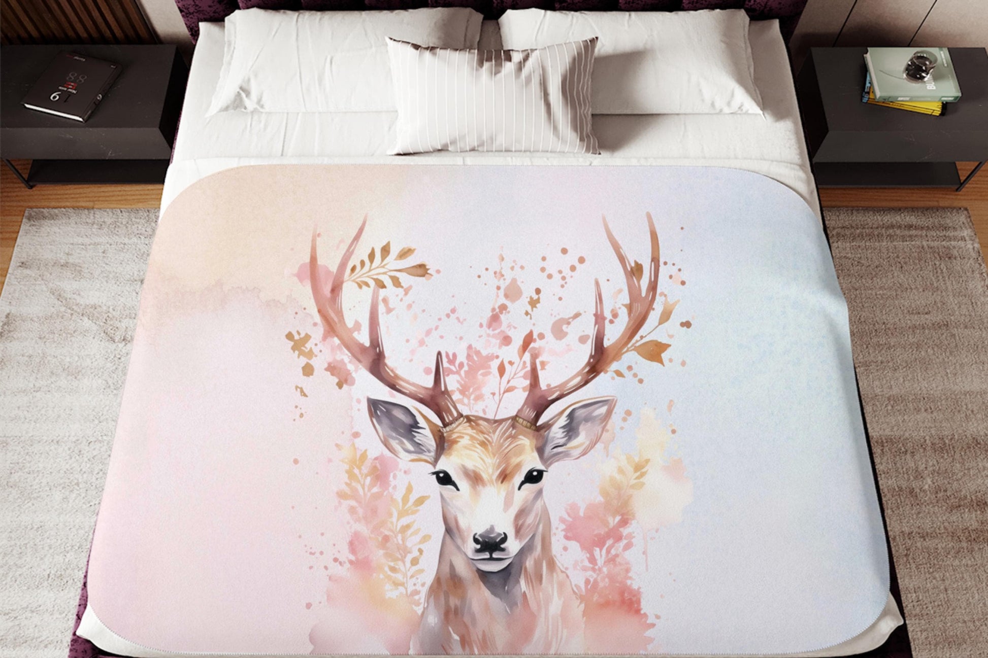 Watercolor Deer Sherpa Blanket, Cottagecore Woodland Throw, Pastel Forest Animal Art, Soft Antler Blanket, Cozy Boho Cabin Decor