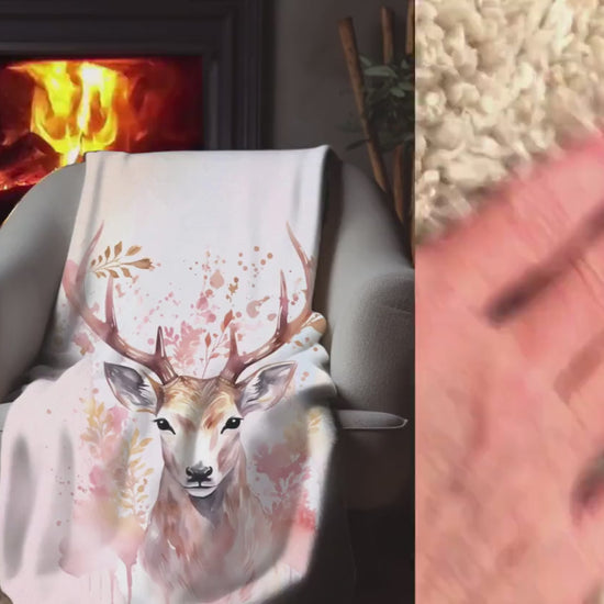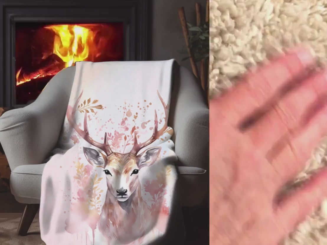 This soft sherpa blanket features a graceful deer with watercolor antlers surrounded by pastel florals and gentle splashes of color. Perfect for cottagecore lovers, boho nurseries, or rustic holiday homes, this design brings nature’s calm indoors.