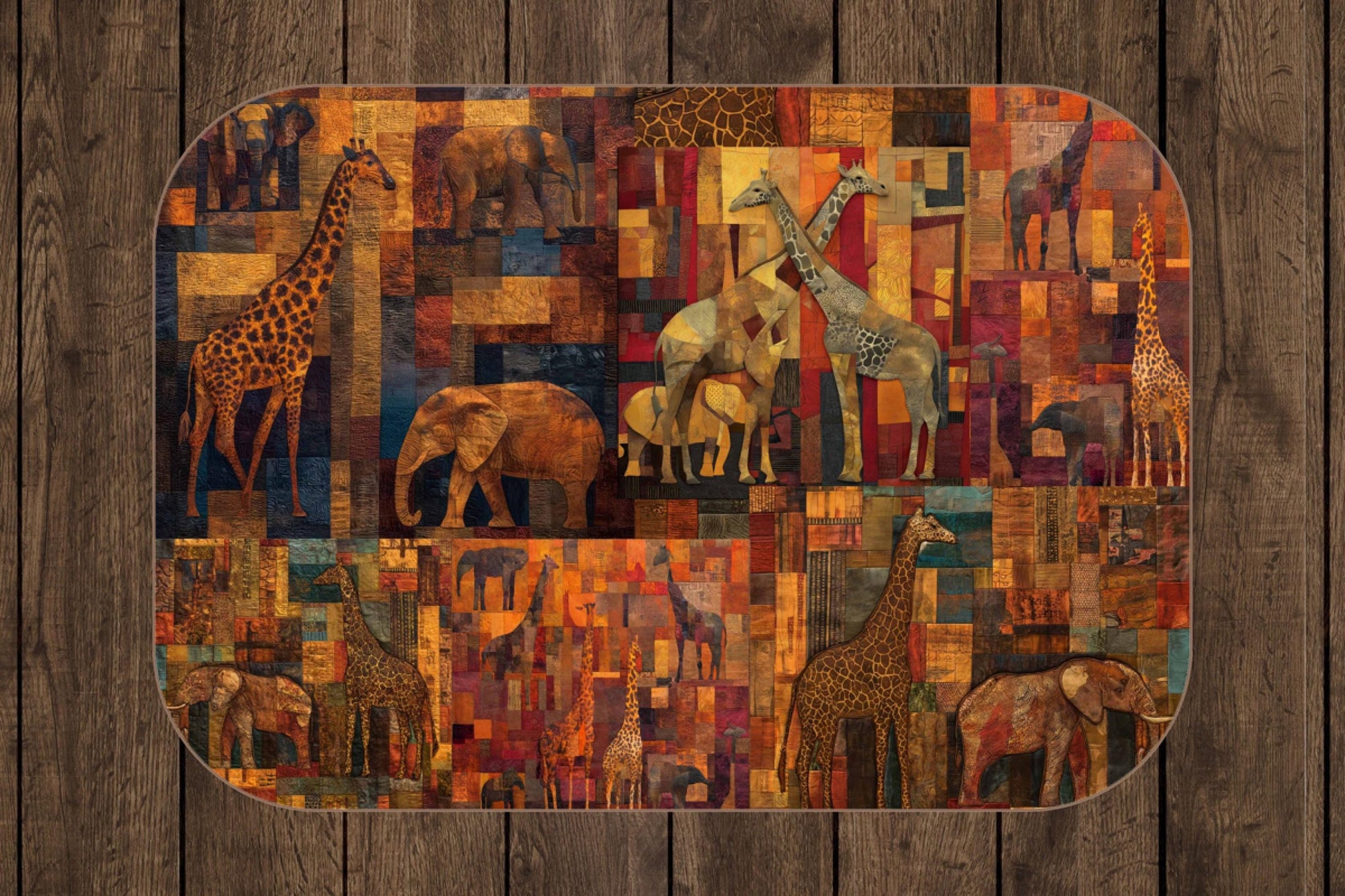 Safari Giraffe Patchwork Sherpa Blanket ā Warm Earth Tones, Elephants & African Wildlife Art