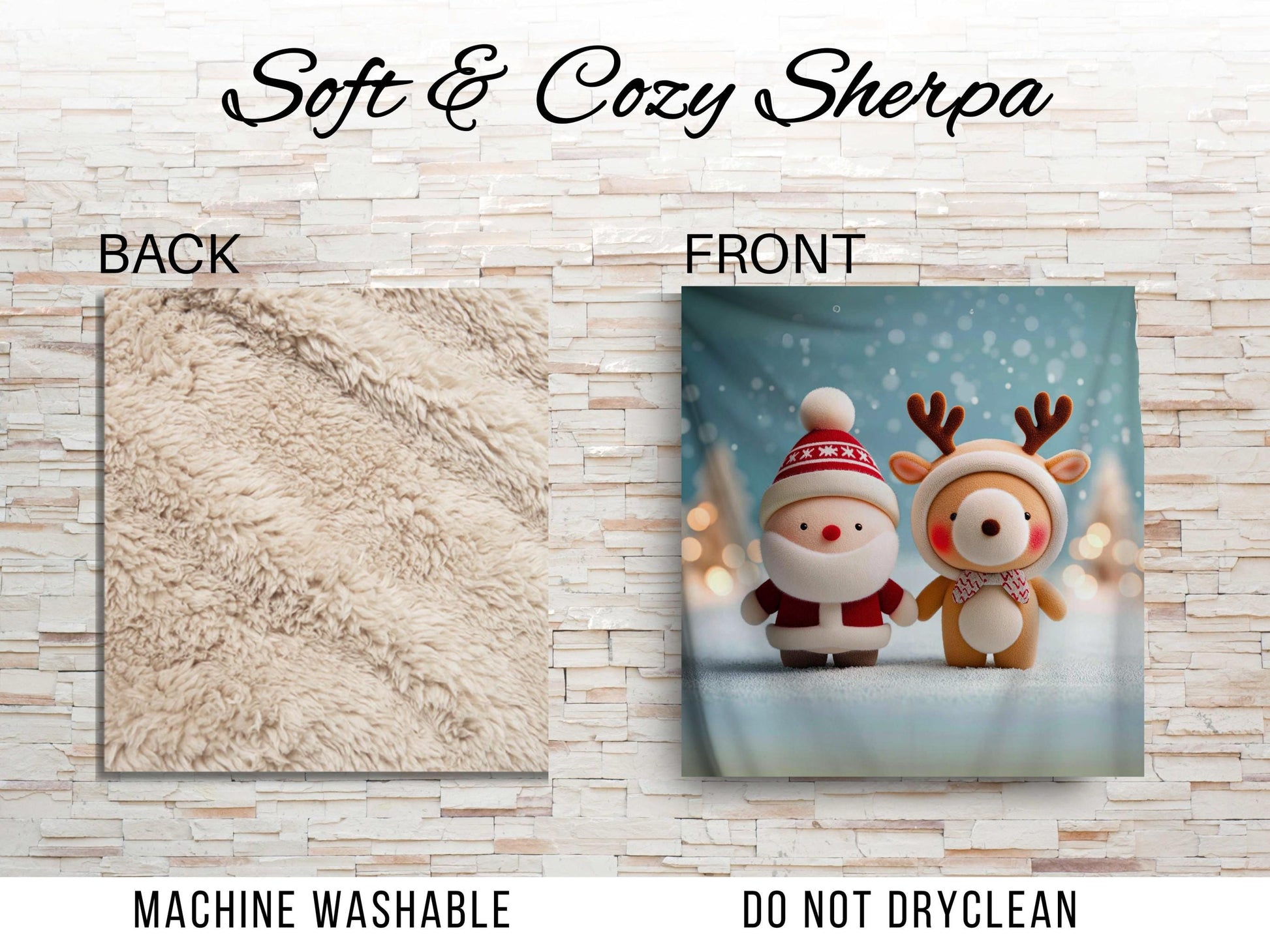 Bring cozy holiday magic to your home with this ultra-soft Sherpa blanket featuring an adorable plush-style Santa and reindeer pair. Perfect for kids, babies, and holiday lovers, this blanket adds warmth and festive cheer to bedrooms, nurseries, or holiday photo sessions.