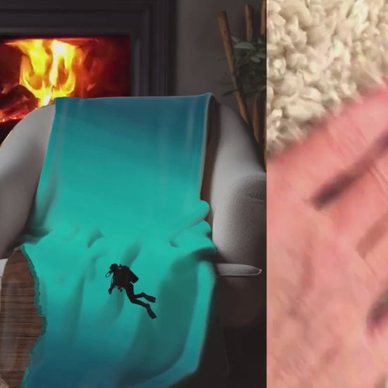 Scuba Diver Ocean Sherpa Throw Blanket Deep Sea Adventure Design