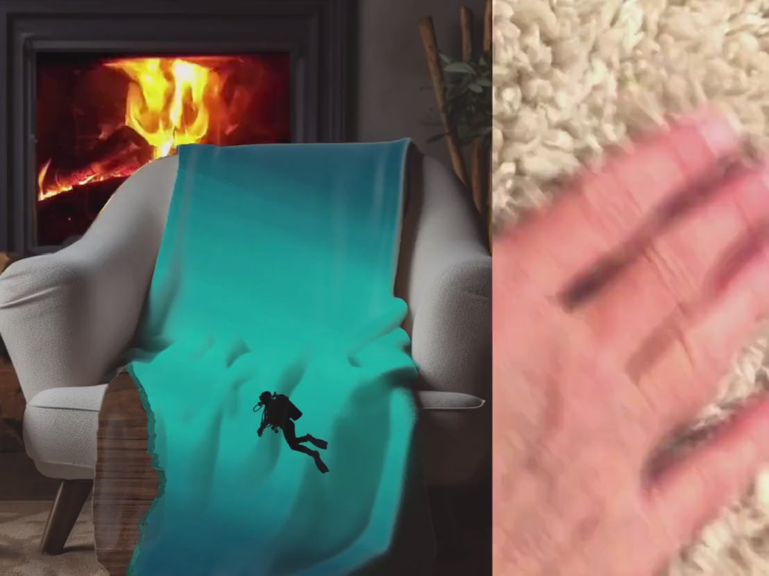 Bring the spirit of the sea into your space with this unique Sherpa blanket featuring a bold silhouette of a surfer and scuba diver set against an oceanic backdrop with rich woodgrain and vibrant blue waves. Perfect for surf lovers, divers, beach bums, or anyone drawn to coastal life, this cozy blanket combines nature and adventure in a sleek, modern style. Makes a memorable gift for ocean enthusiasts, teens, and outdoorsy souls.