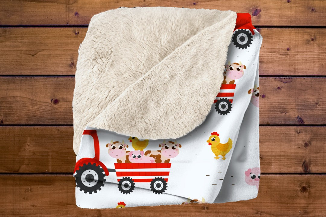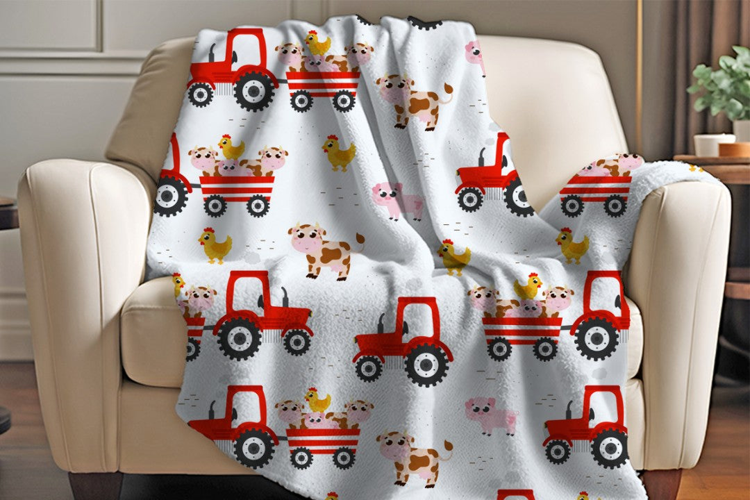 Sherpa Throw Blanket - Farm Animals and Tractor - Soft Plush Throw Blanket