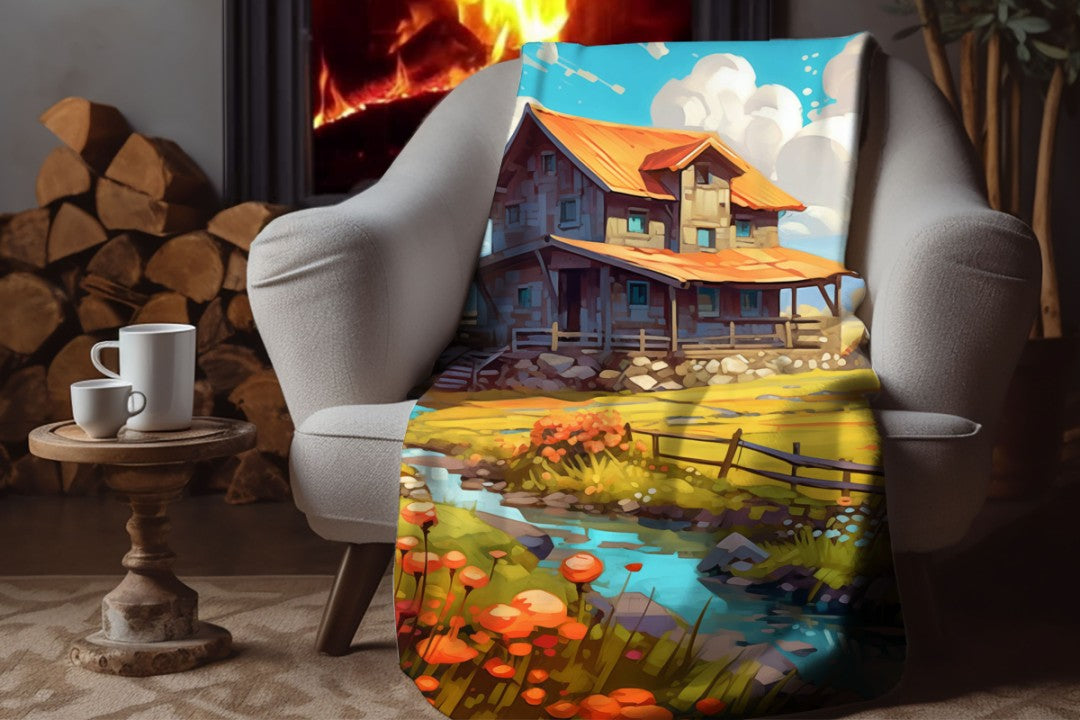 Wrap yourself in soft luxury with this plush sherpa throw featuring a stunning Farm Landscape Design. With a velvety smooth front and warm sherpa backing, it adds both comfort and eye-catching style to any room.