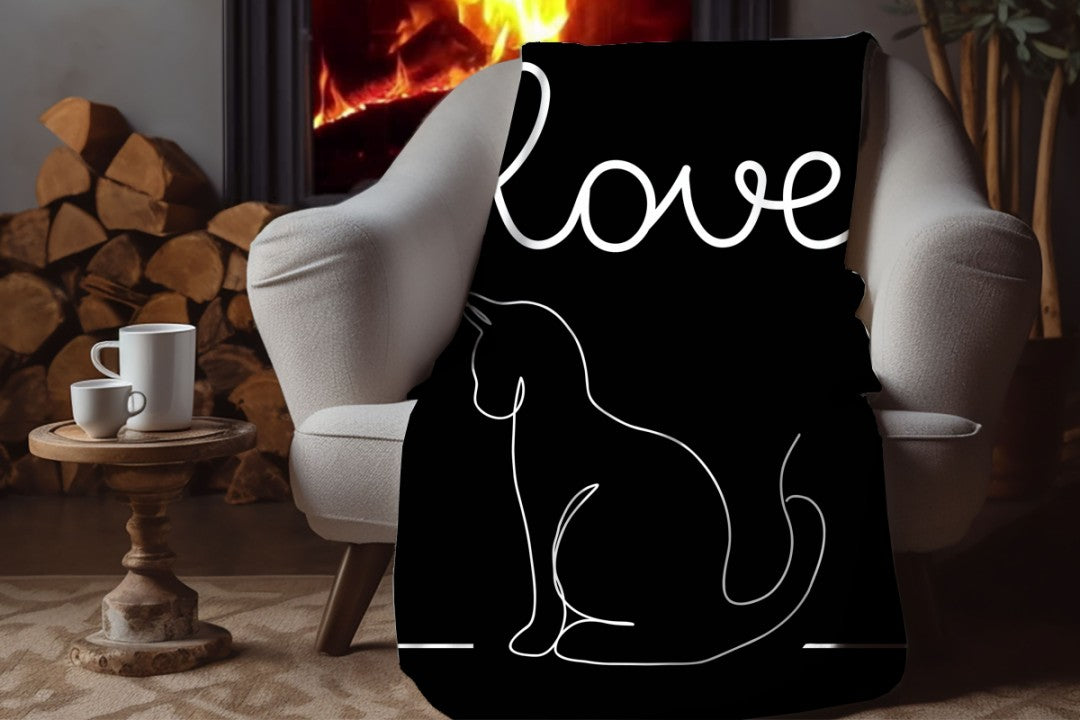 Sherpa Throw Blanket - Minimalistic Love Cat Black and White Design - Soft Plush Throw Blanket