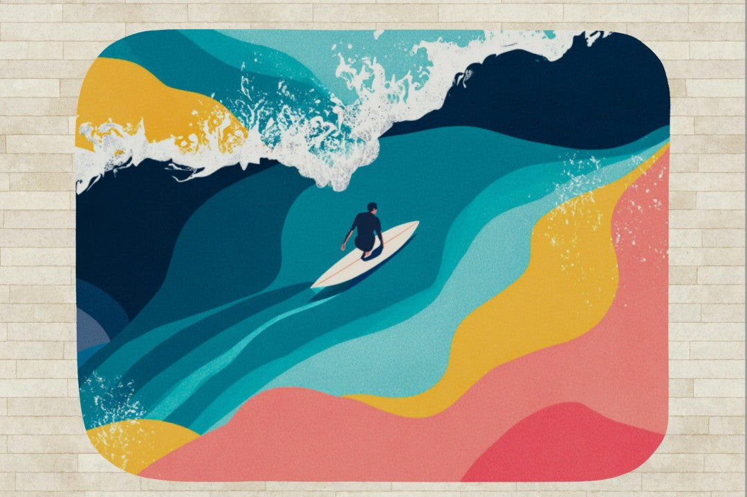 Bring calm beach energy into your space with this Colorful Ocean Sherpa Blanket, featuring a modern abstract wave design with a minimalist surfer scene. The layered ocean tones and soft sunset colors create a coastal vibe that feels relaxing, stylish, and cozy year-round.