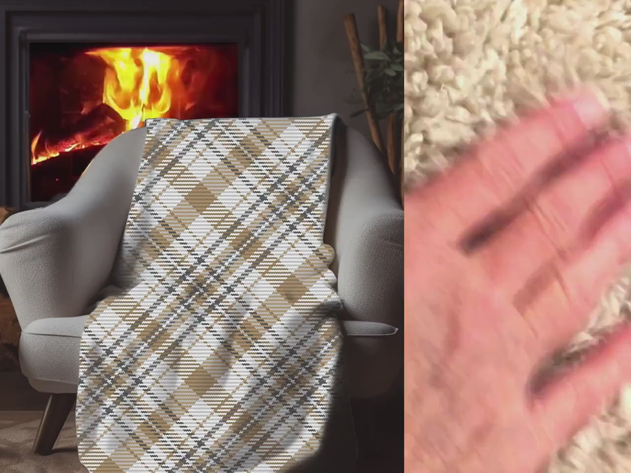 Tan Knit Plaid Sherpa Blanket, Cozy Winter Throw, Rustic Cabin Decor Gift, Warm Plush Blanket, Custom Neutral Bedding, Classic Pattern
