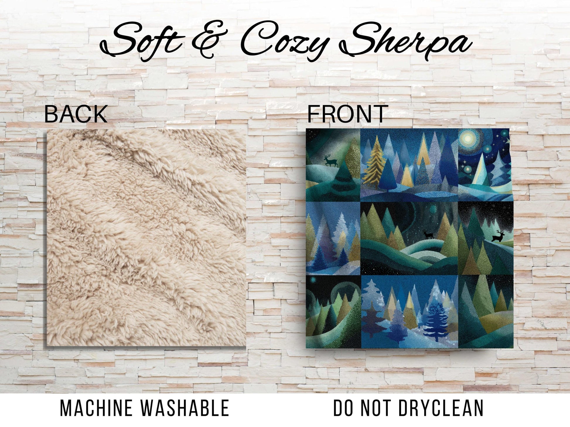 - Sherpa fleece backside for extra softness and coziness