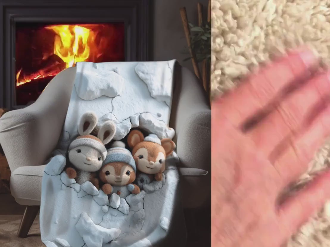 Winter Plush Animal Sherpa Blanket – Cute Snow Creatures, Cozy Kids Decor, Soft Holiday Throw